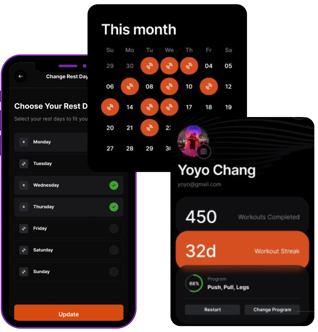 Flexibility meets structure with customizable rest day options. Create a schedule that works for your lifestyle without compromising progress.